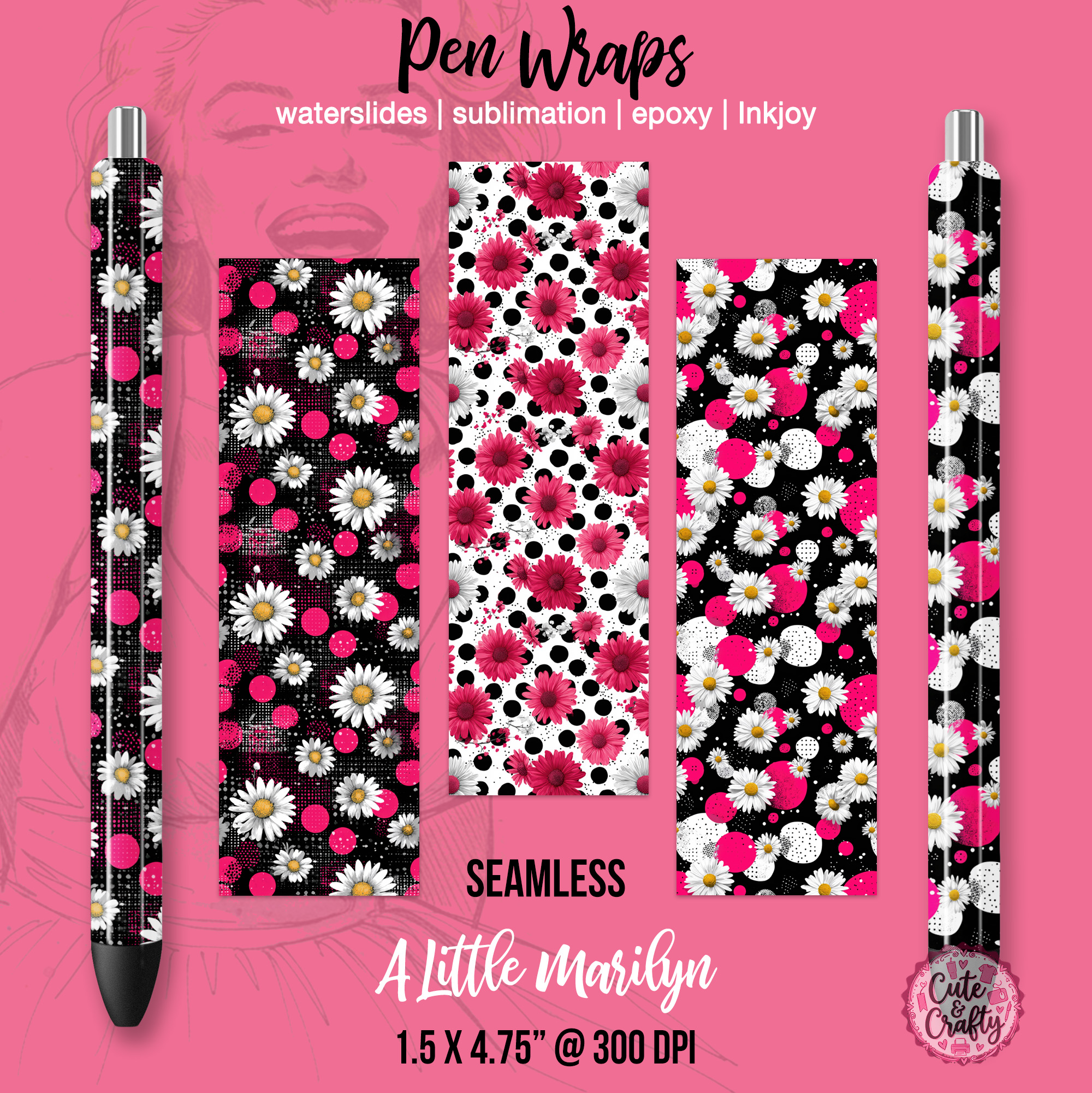 Featuring a playful mix of classic polka dots, crisp white daisies, and stunning hot pink florals, this bundle captures that iconic pop art energy with a modern, crafty twist. The seamless patterns transition beautifully across your favorite pens, offering a professional finish that looks just as good on a classroom desk as it does in a designer office.