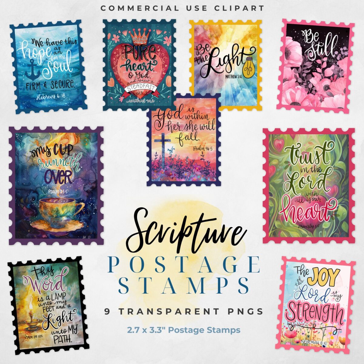 Be the first to review “Bible Scripture Postage Stamp Clipart Pack”