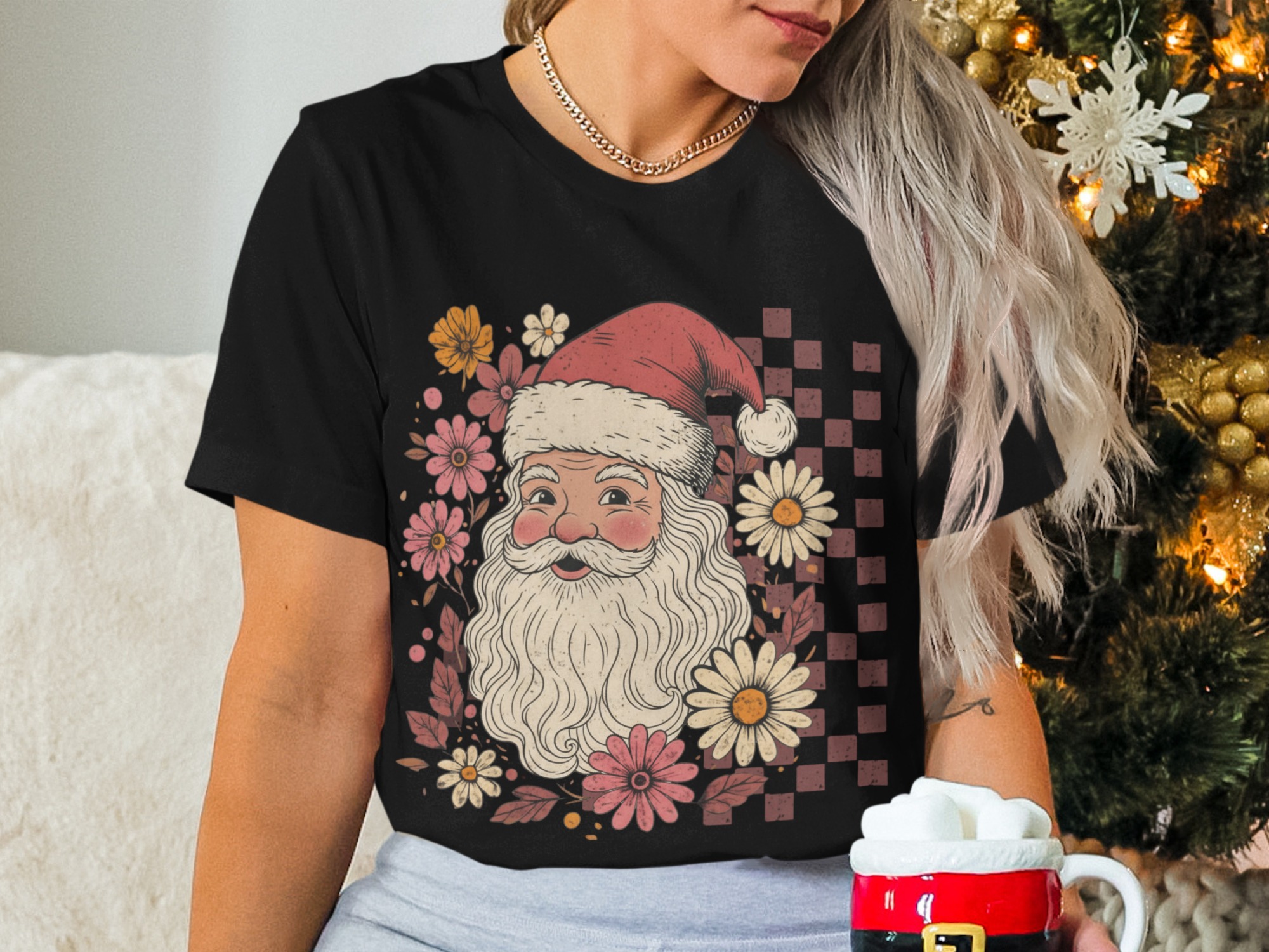 Embrace the girly, boho Christmas spirit with this charming and trendy Santa Claus design that’s sure to spread joy and style.