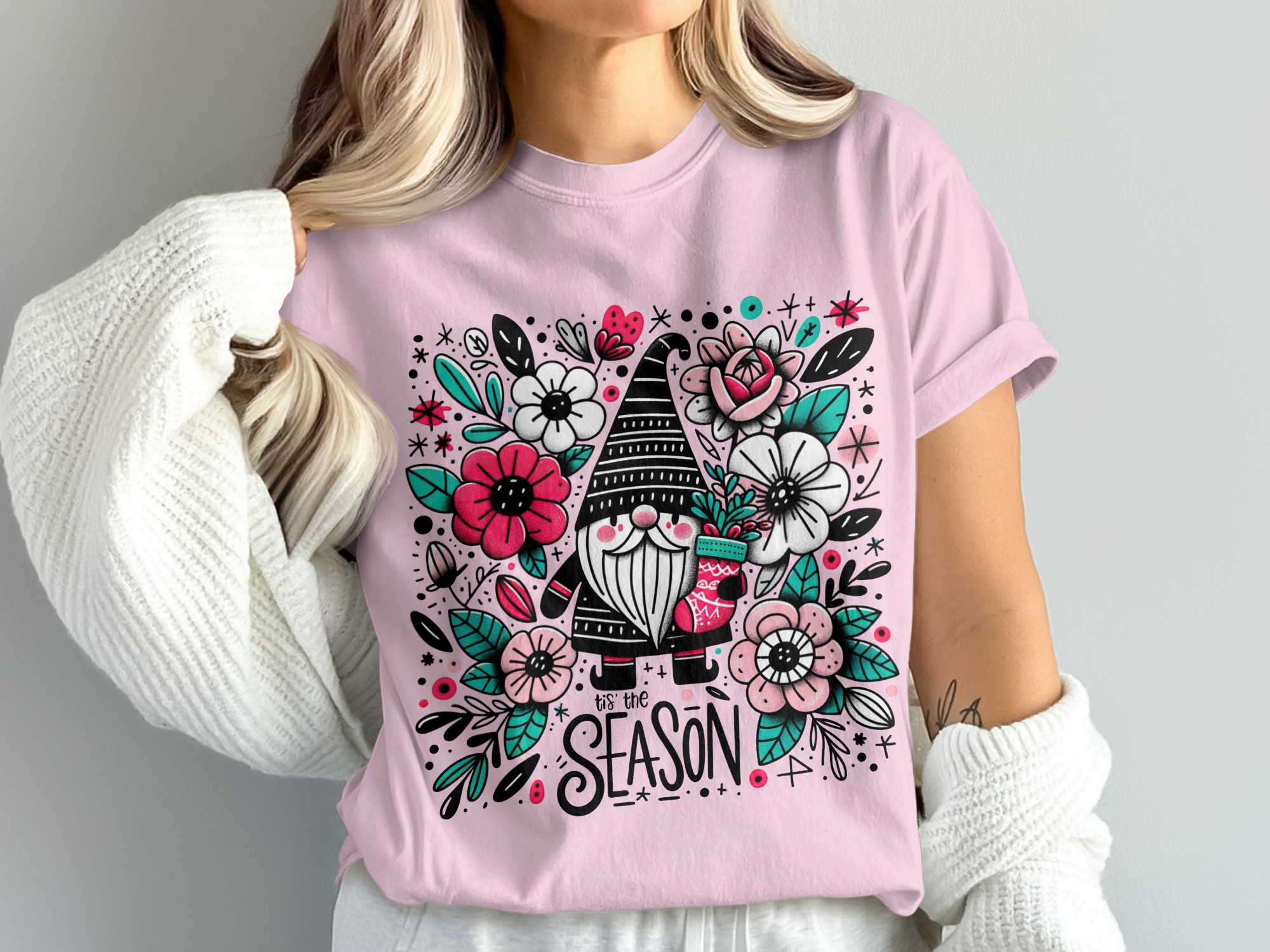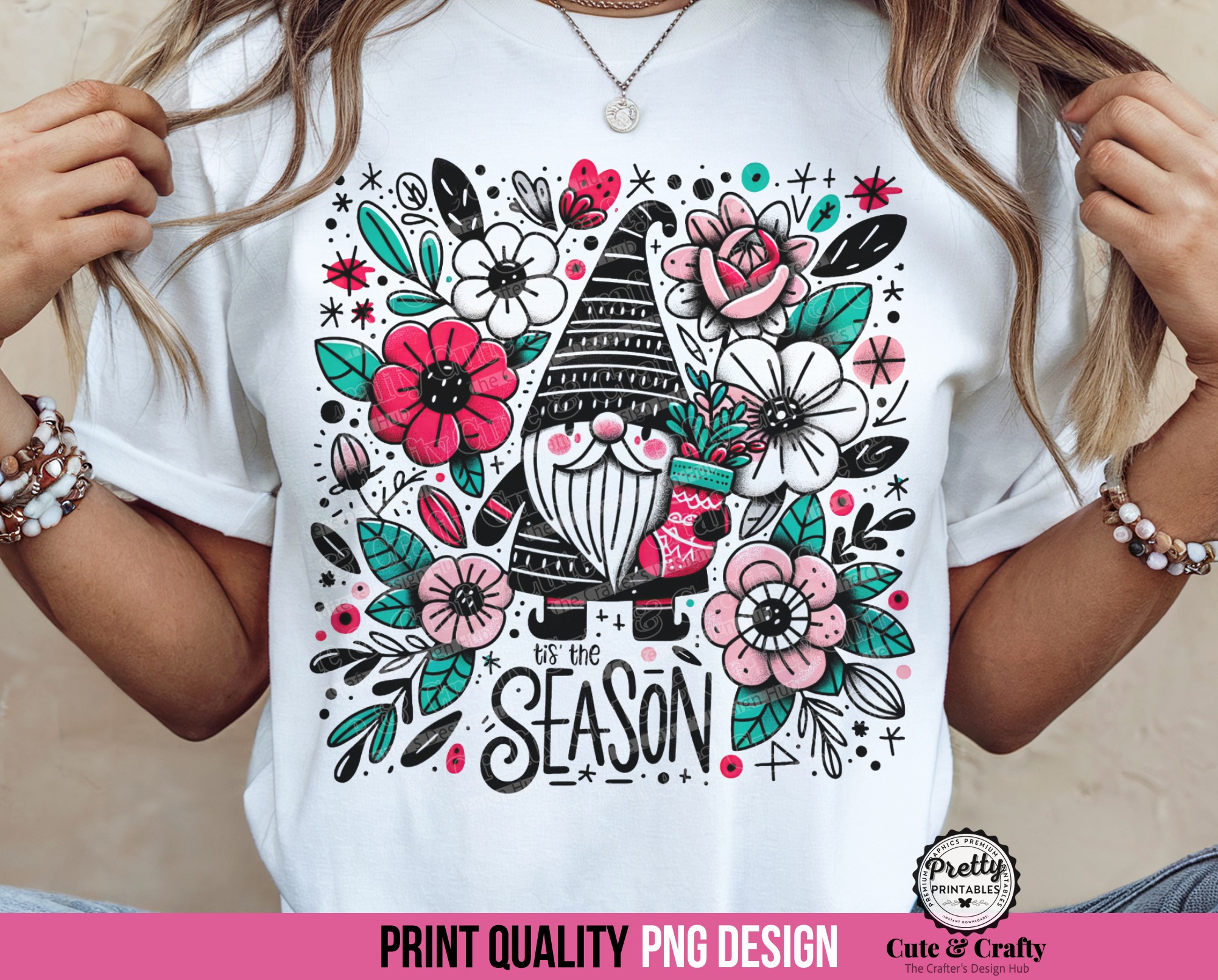 Add a playful pop of pink and festive charm to your holiday creations with this adorable Christmas gnome digital design!