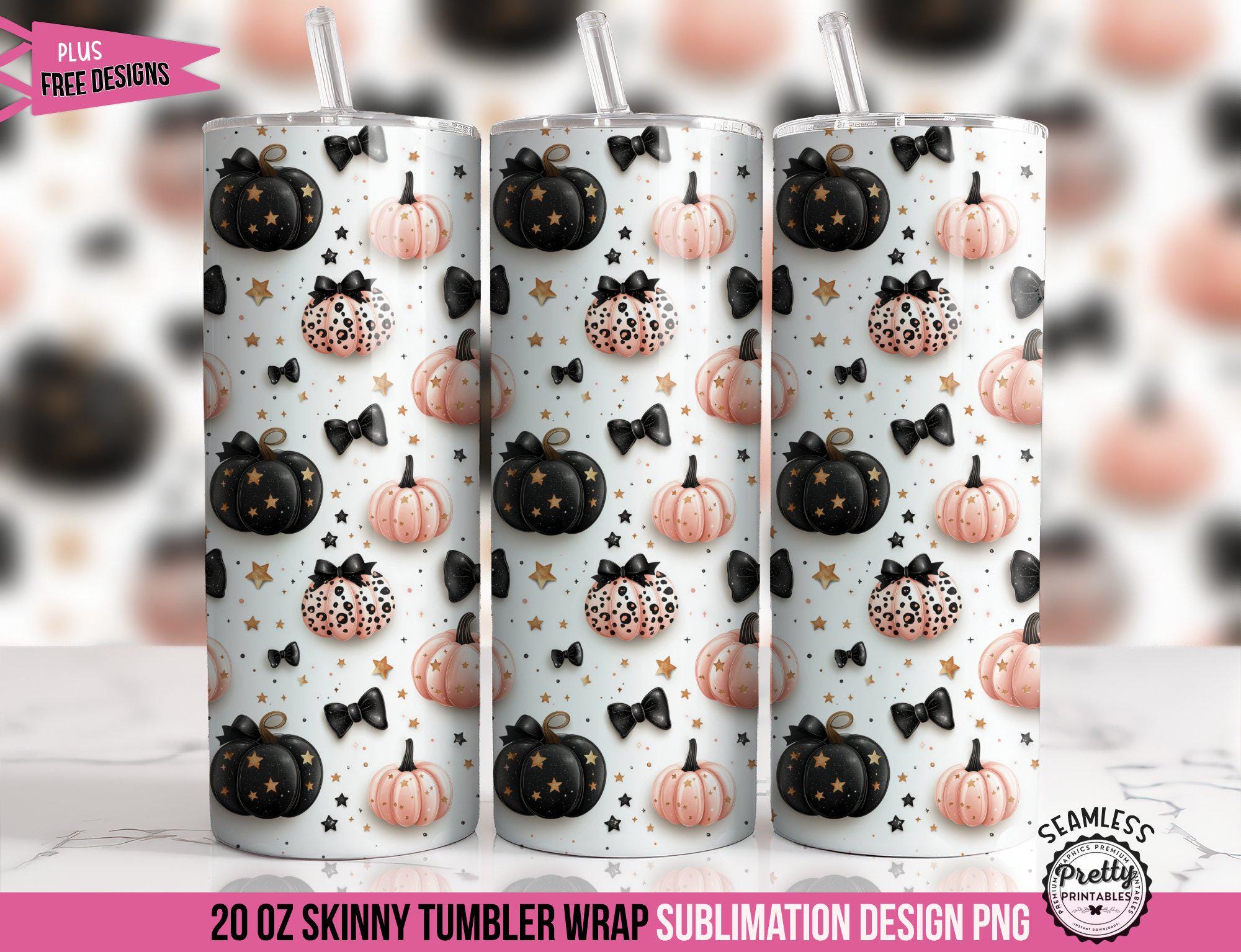 This 20 oz Skinny Seamless Sublimation Design PNG combines the playful elegance of Coquette Bows with the festive charm of pumpkins, all wrapped in a dazzling 3D Halloween Glitter effect. Perfect for those who love a Clean Girl Aesthetic with a touch of Cheetah Print flair.