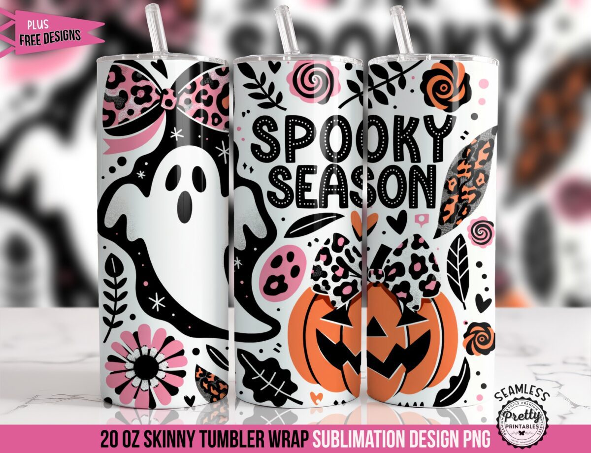 Featuring an adorable ghost and pumpkin decked out in chic pink leopard-print bows, this 20 oz sublimation design blends playful coquette style with classic Halloween charm. Perfect for those who love to mix cute and spooky, this pinkoween wrap brings a pop of personality and festive flair to your tumbler.