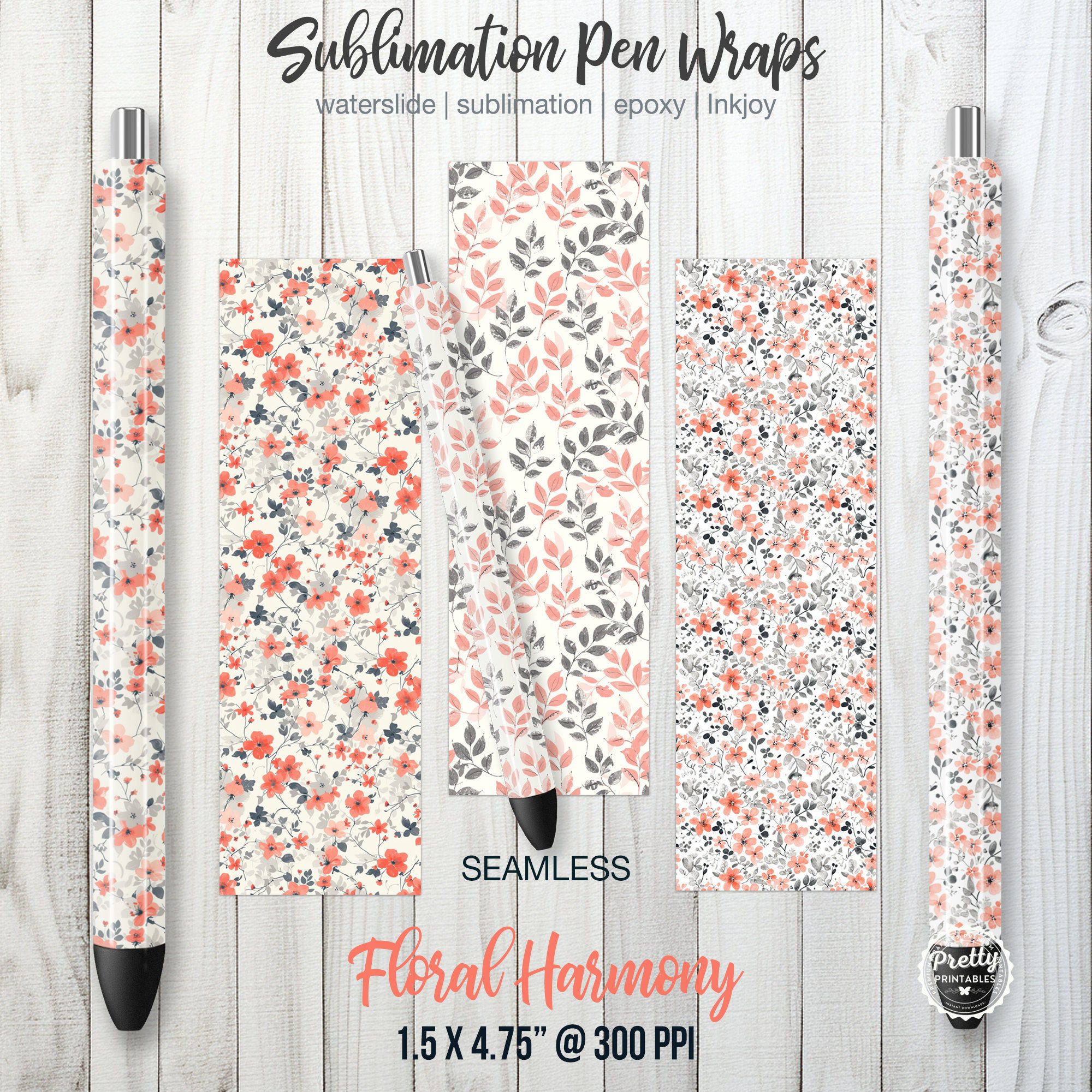 Featuring delicate floral patterns in soft, pastel tones, this sublimation pen wrap bundle is perfect for creating stunning waterslide, epoxy, or sublimation pen projects.