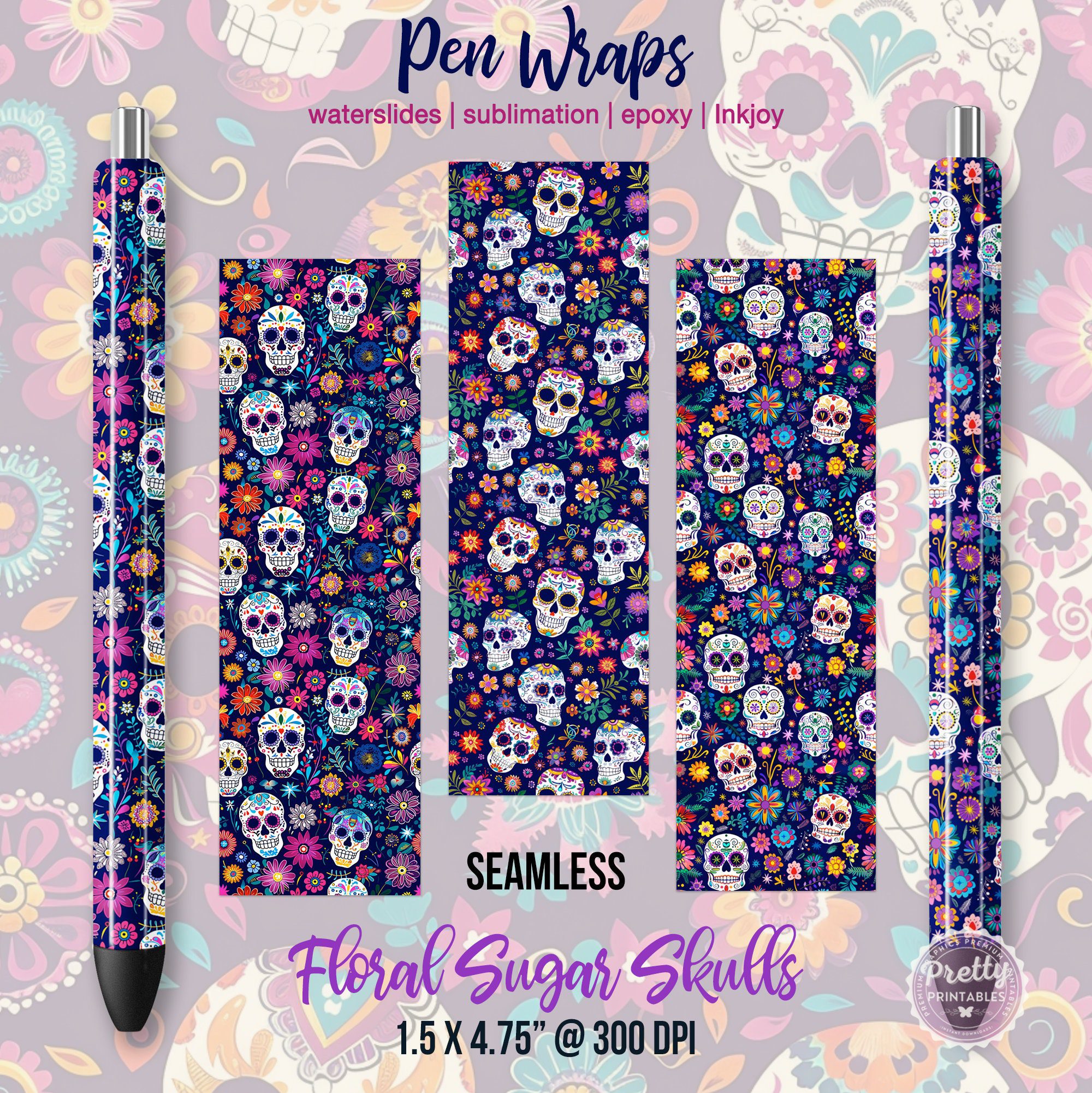Embrace the spirit of Día de Muertos and turn your pens into pieces of art with these seamless floral sugar skull pen wraps, where every pen becomes a vibrant homage to the Day of the Dead.