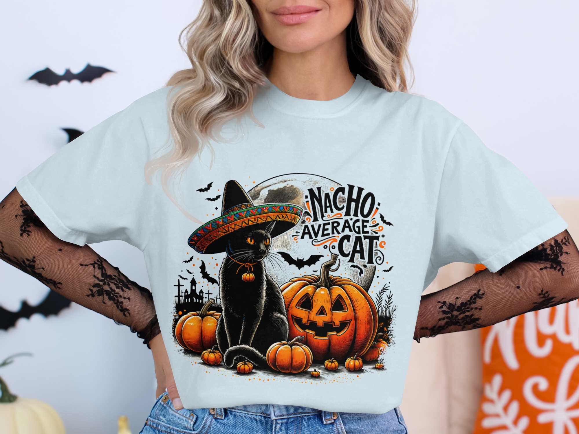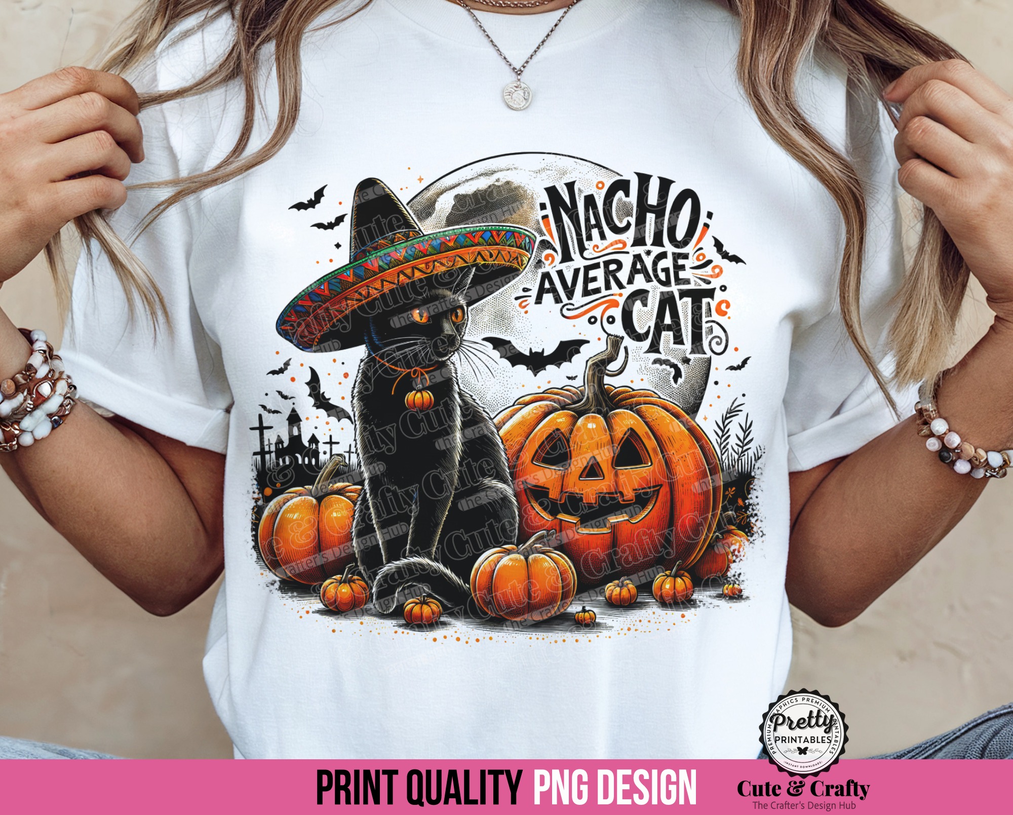 Perfect for anyone who loves Halloween with a side of humor and unique style, this design is ideal for shirts, party decor, or gifts that stand out from the crowd. Celebrate Halloween with a design that’s nacho average cat—perfect for cat lovers, foodies, and anyone who enjoys a little extra fun in their fall festivities.