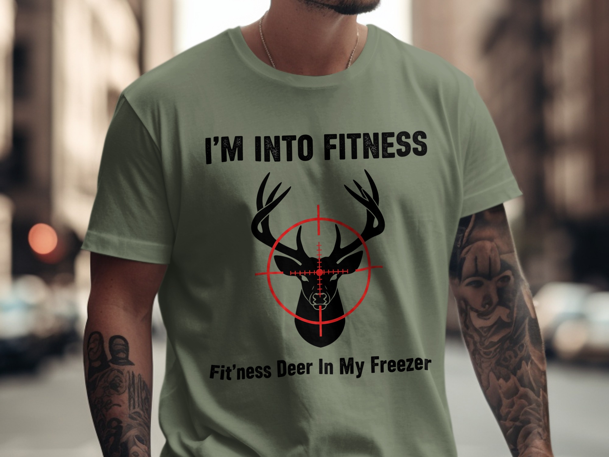 This digital design is the ultimate Humorous Deer Hunter PNG for anyone who prefers stocking the freezer over hitting the gym.