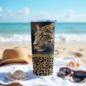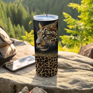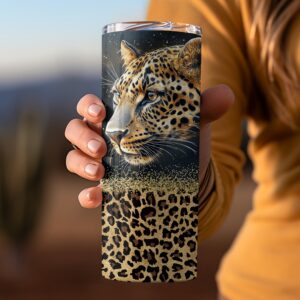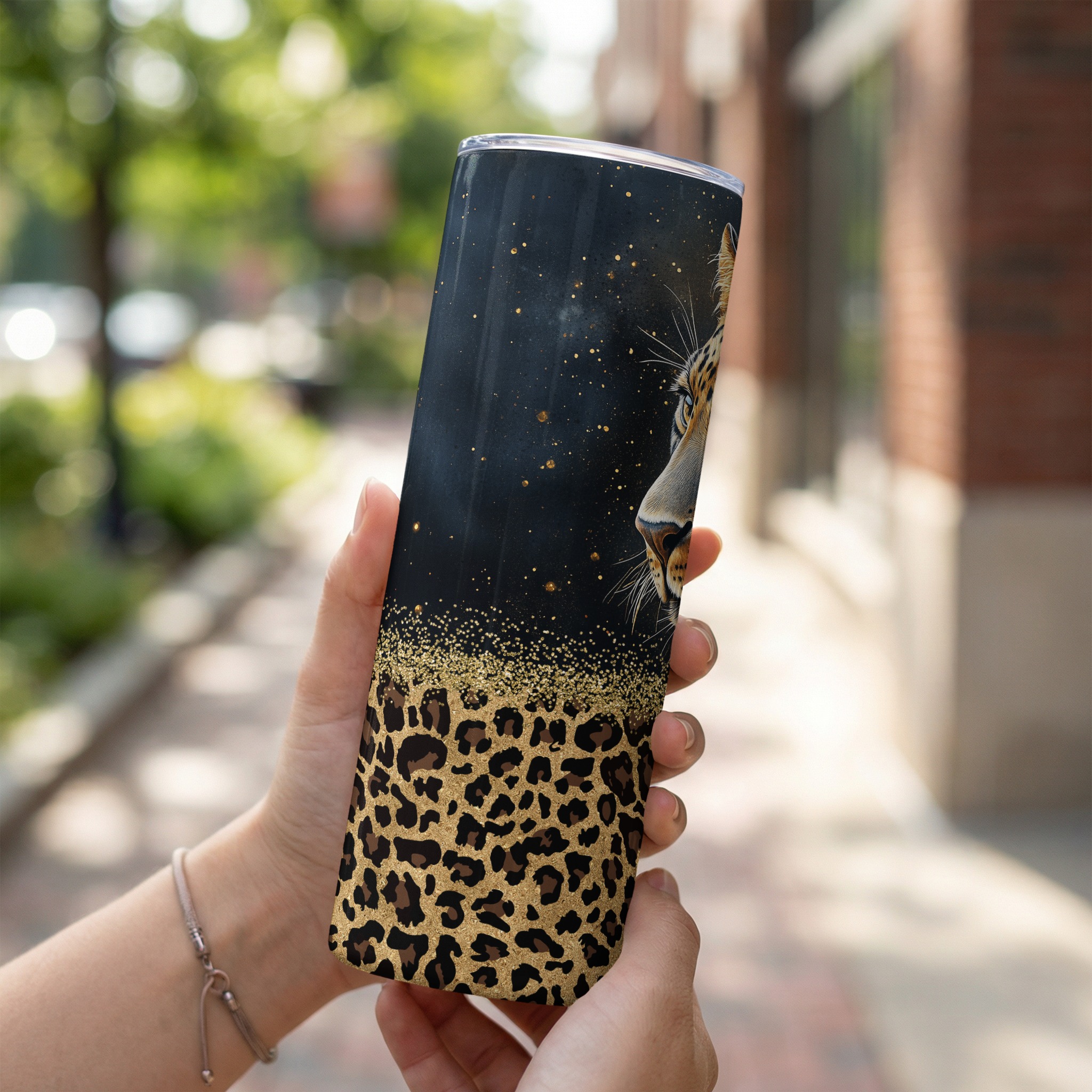 Imagine yourself strutting through the jungle of life with a tumbler that perfectly captures your wild and adventurous spirit. The sleek black backdrop, paired with dazzling gold glitter and a striking leopard print, will turn heads wherever you go.