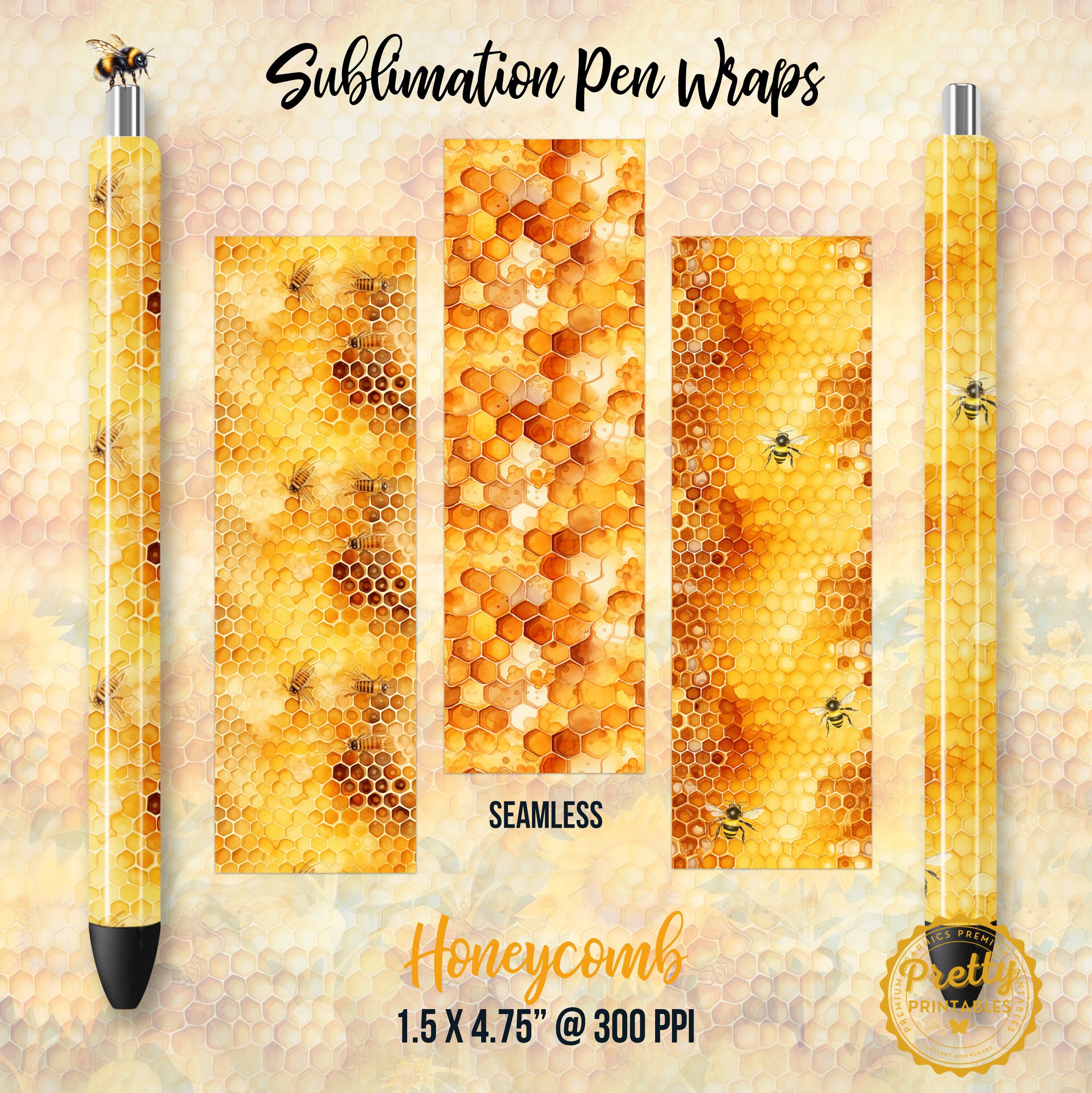 These honey bee pen wraps are print-quality at 300ppi. Although they’re crafted specifically for the InkJoy pens, they will work for other pens of a similar size. Remember to measure your pens to ensure the perfect fit!