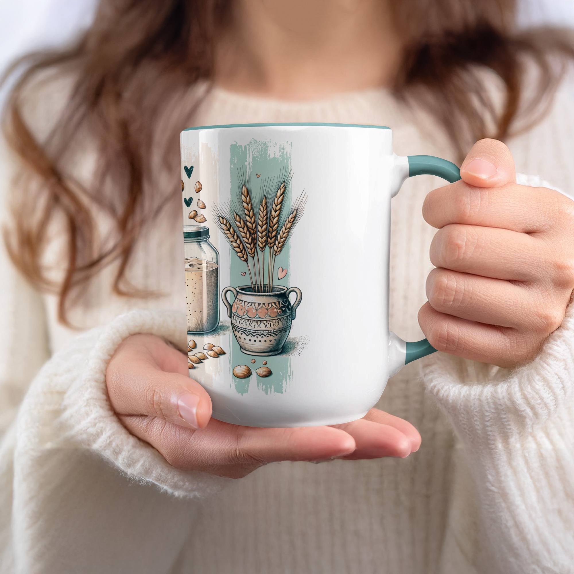 Featuring beautifully illustrated sourdough essentials like a fresh loaf, wheat stalks, a jar of starter, and rustic baking tools, this design is perfect for bread makers, baking enthusiasts, and anyone who loves the art of sourdough. The soft, earthy tones and whimsical details make it ideal for shirts, ornaments, tote bags, or any project that celebrates your love for baking.