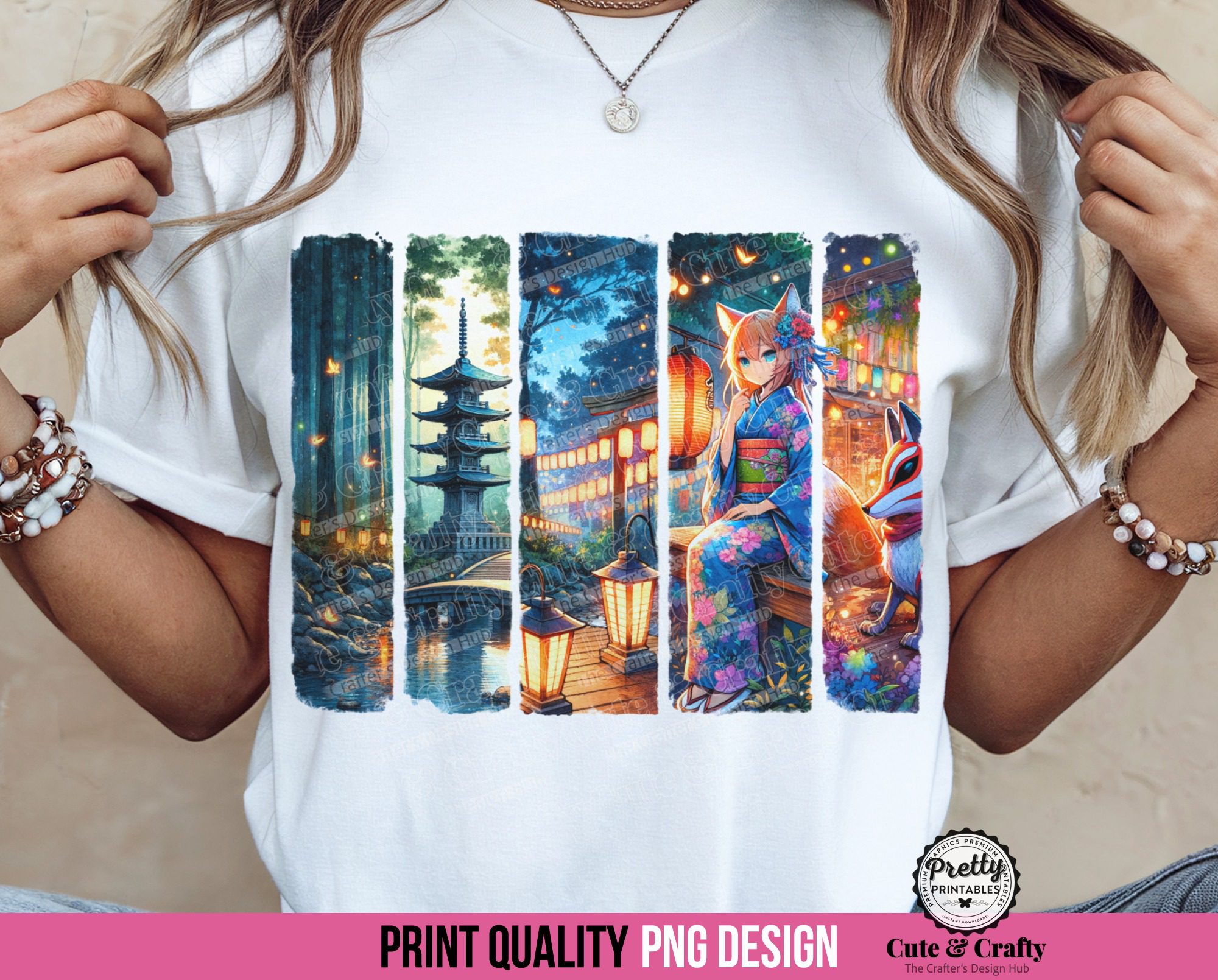 Step into a mystical world with this enchanting Japanese Anime Shirt Sublimation Design PNG! Featuring a serene Geisha anime character in a vibrant kimono with a Kitsune fox spirit. They are surrounded by glowing lanterns, a bamboo forest, and a tranquil pagoda… this design beautifully captures the magic of Japanese folklore and cottagecore aesthetics.