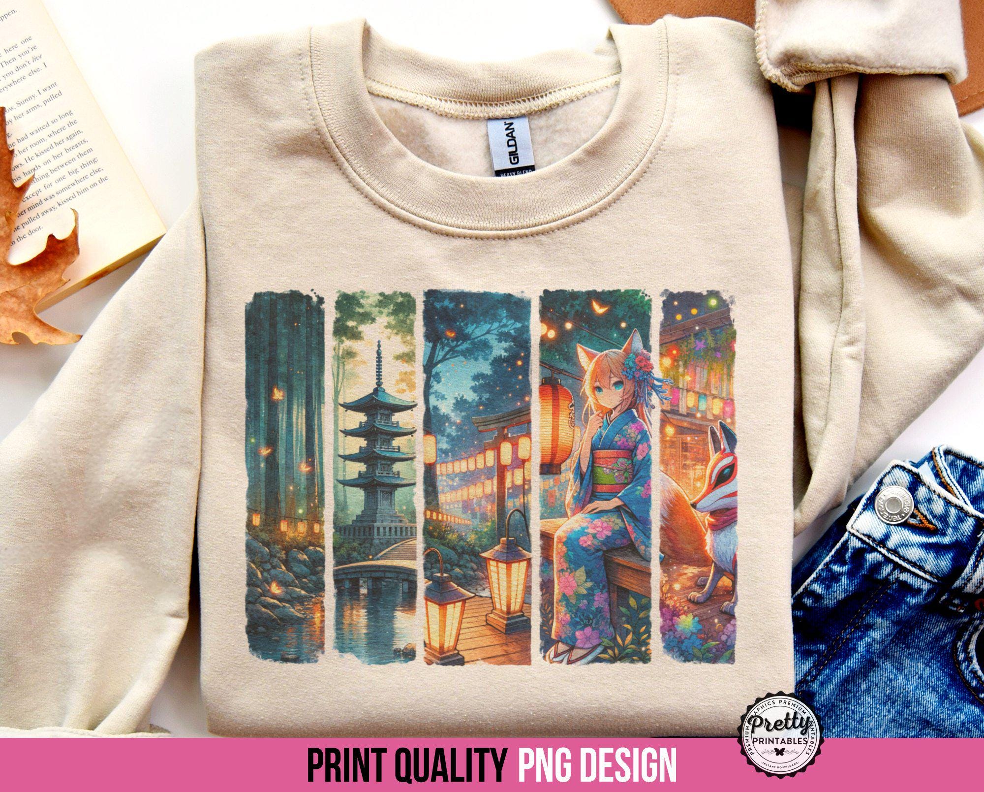 Perfect for anime lovers, fans of Japanese art, or anyone who adores whimsical and mystical vibes, this design is ideal for crafting shirts, tote bags, or other creative projects. Let this digital download bring a touch of elegance and fantasy to your creations!