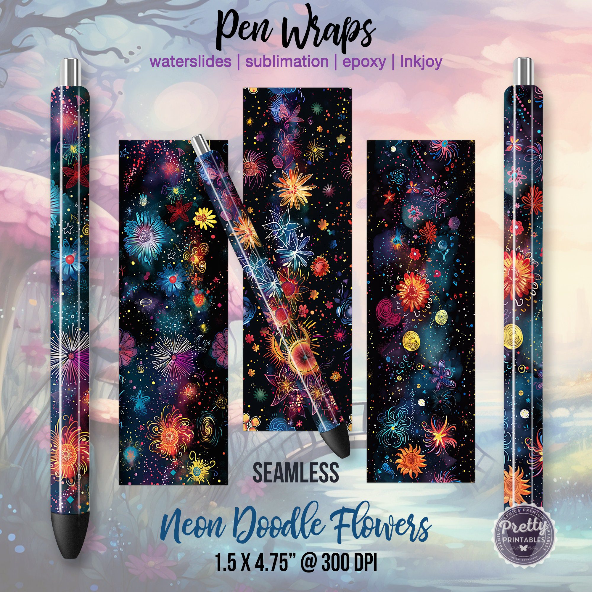 These pen wraps are print-quality at 300 dpi and seamless. Although they’re crafted specifically for the InkJoy pens, they will work for other pens of a similar size. Remember to measure your pens to ensure the perfect fit!