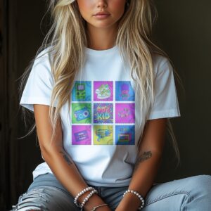It’s packed with 90s nostalgia, from handheld games to troll dolls, perfectly capturing the aesthetic of the era. Use this 90s Kid Sublimation Design to create the ultimate 90s Y2K Shirt png or to craft killer decor for a Back to the 90s Party.