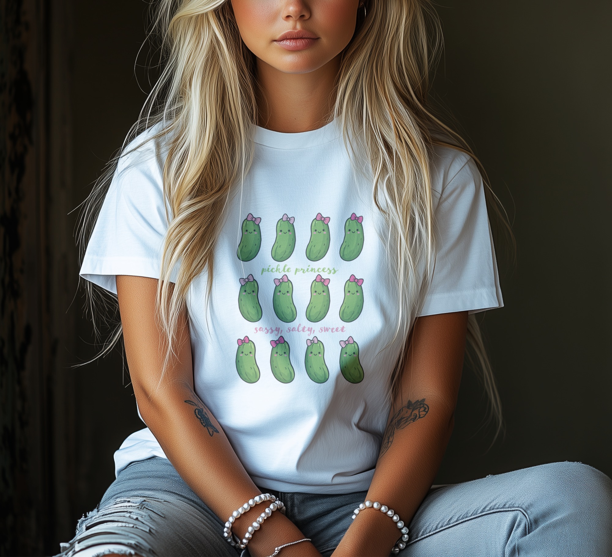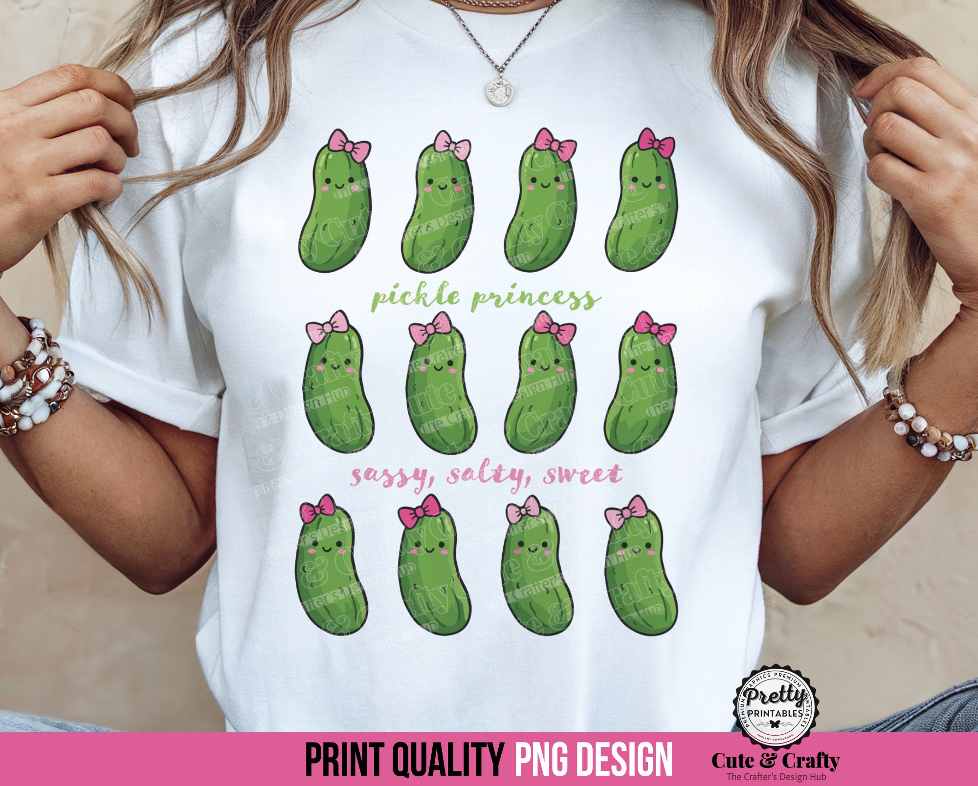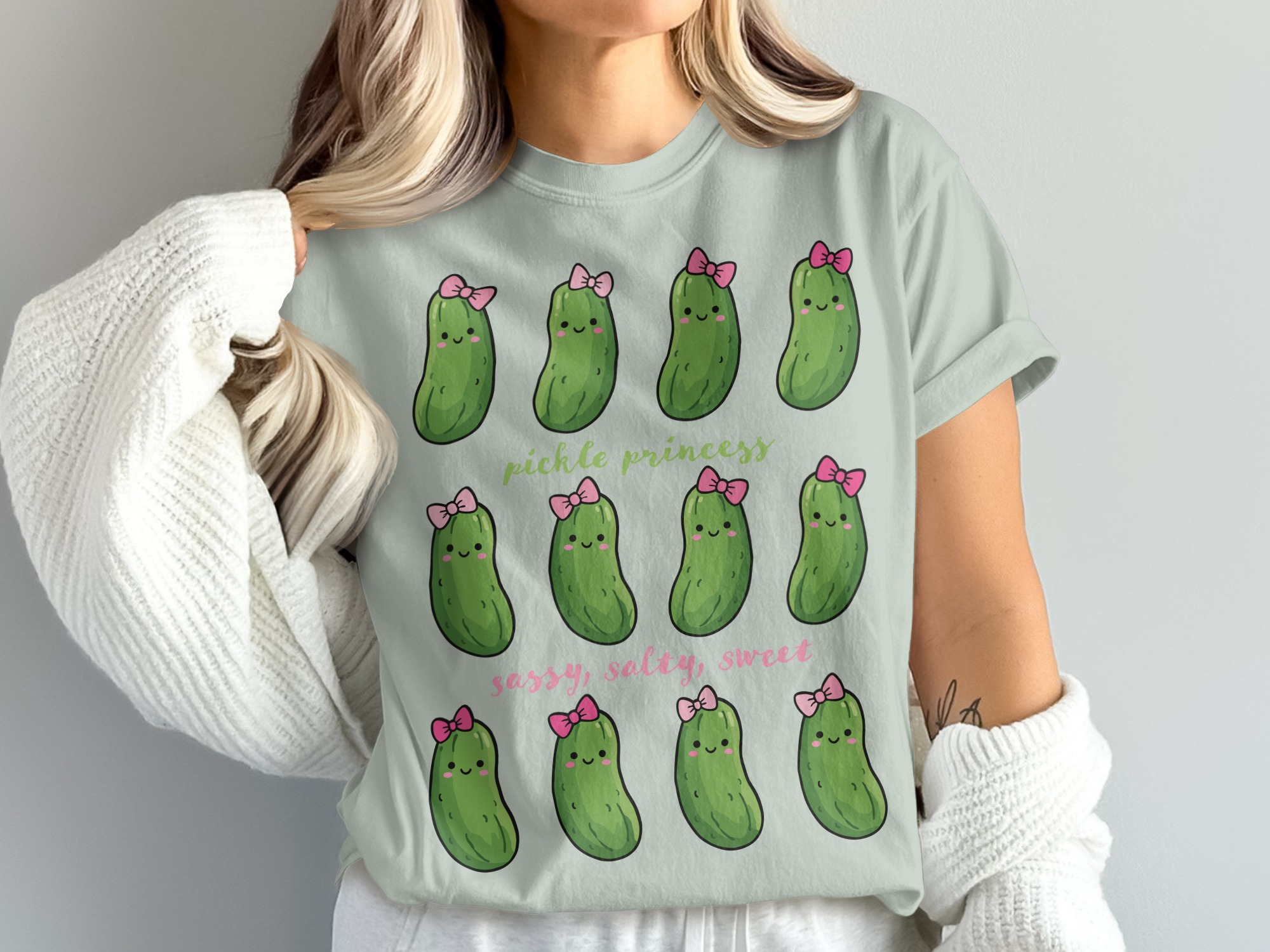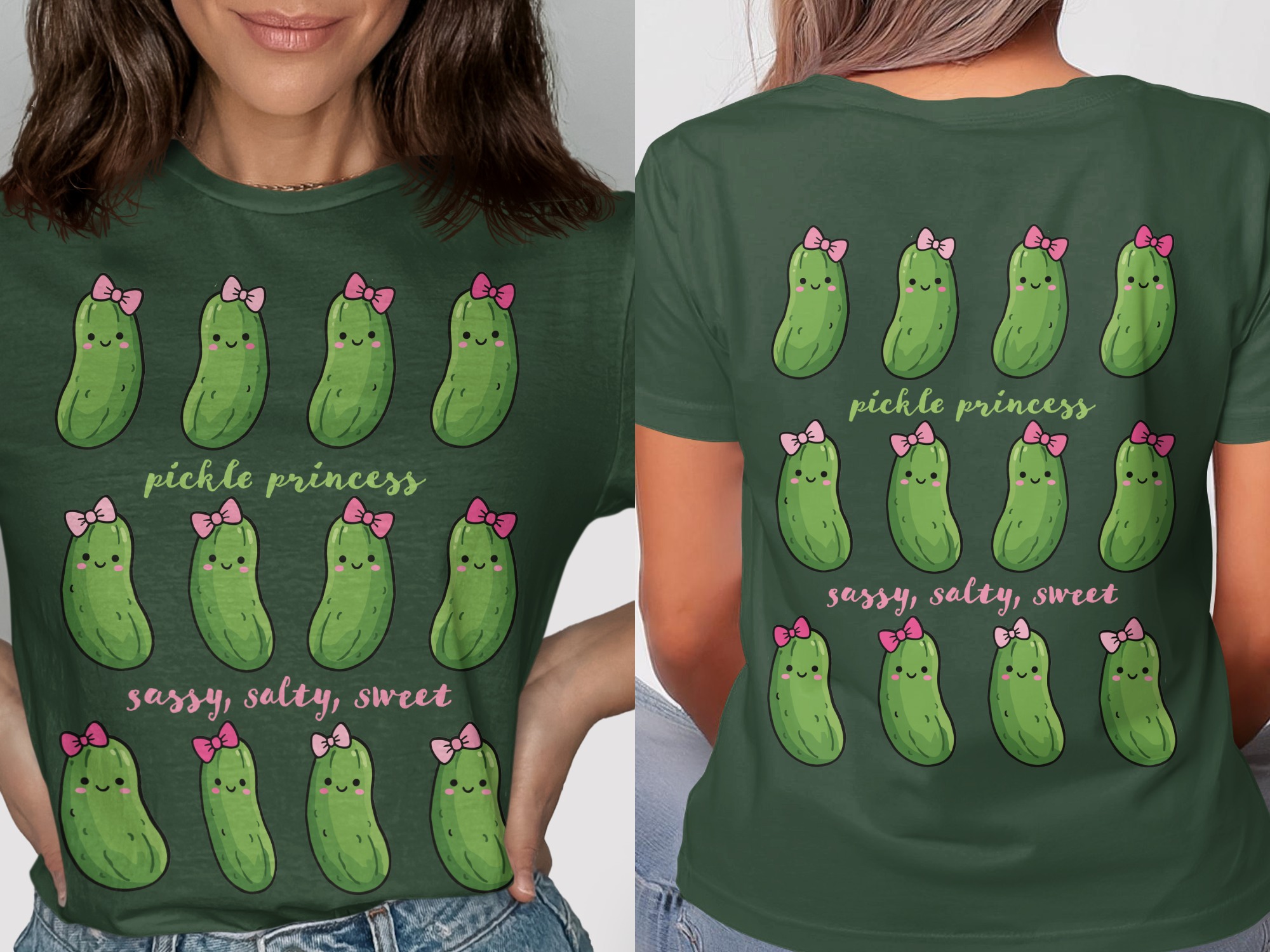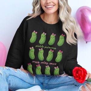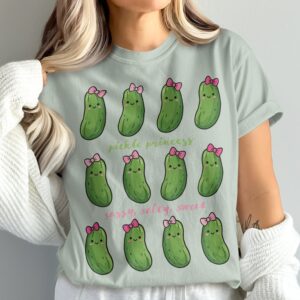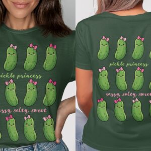 Featuring rows of smiling dill pickles adorned with dainty pink bows, this graphic perfectly captures that sassy, salty, sweet energy. It is a fantastic choice for creating a standout funny pickle shirt or a unique pickle birthday shirt for the ultimate fan of the jar.