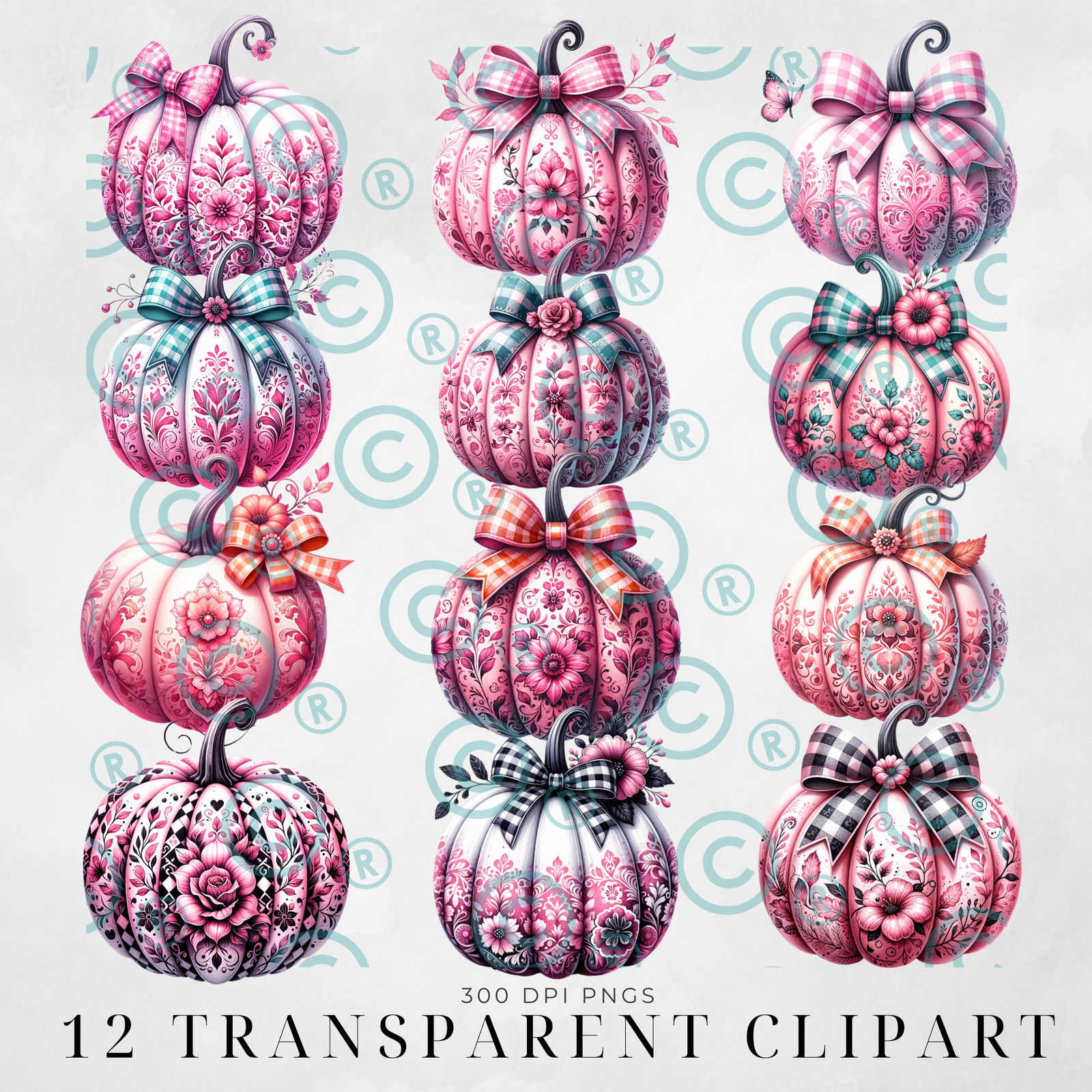 Pink Pumpkins Coquette Bows Clipart BundlePink Floral Pumpkin Coquette Clipart Pack