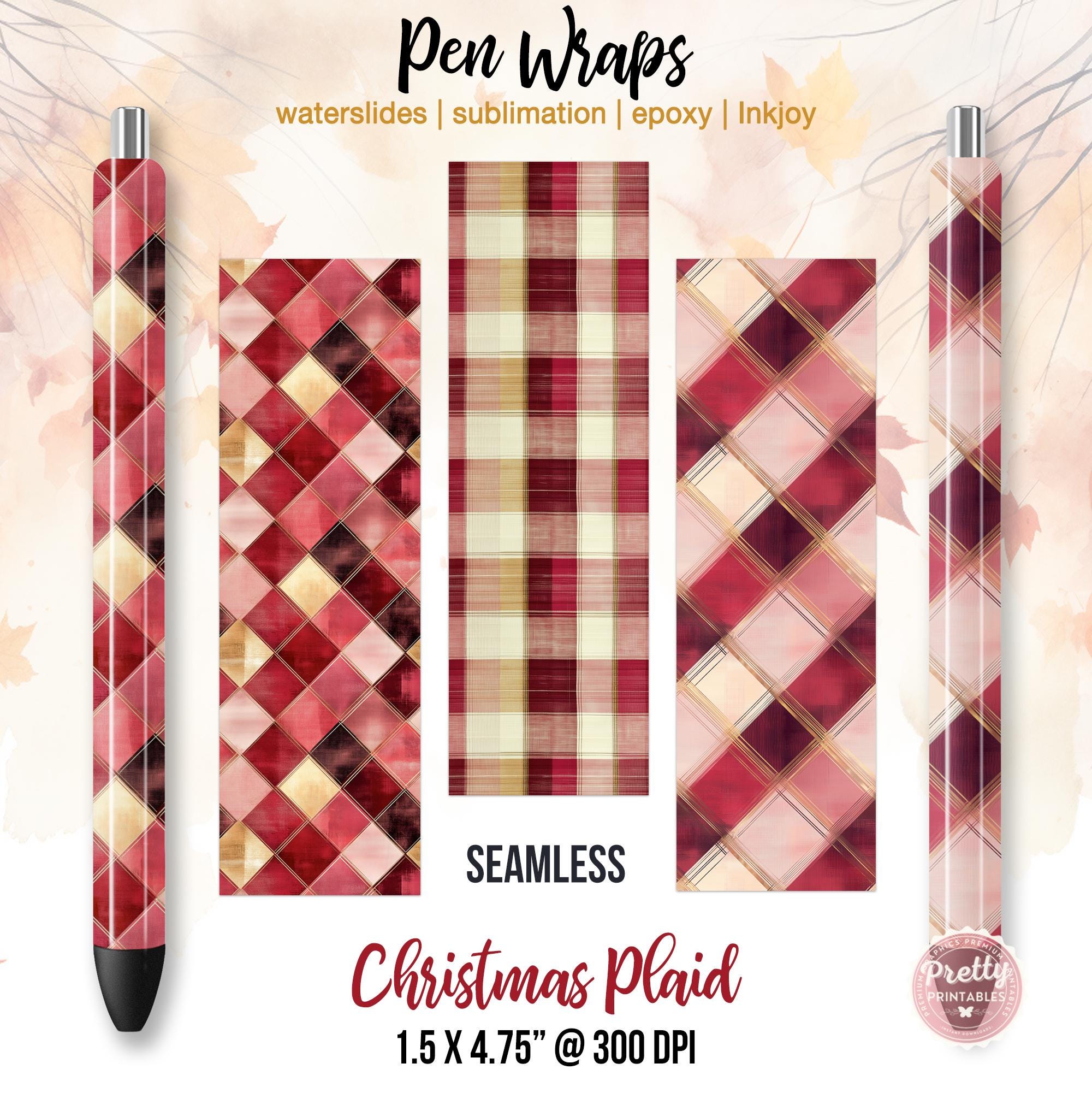 Transform your everyday pens into festive masterpieces with our Plaid Christmas Pen Wraps! This delightful bundle features a stunning blend of gold, red, and pink Christmas designs, perfect for adding a splash of holiday cheer to your writing tools. Whether you’re crafting gifts or personalizing your stationery, these sublimation pen wraps are your go-to choice for creativity and style.