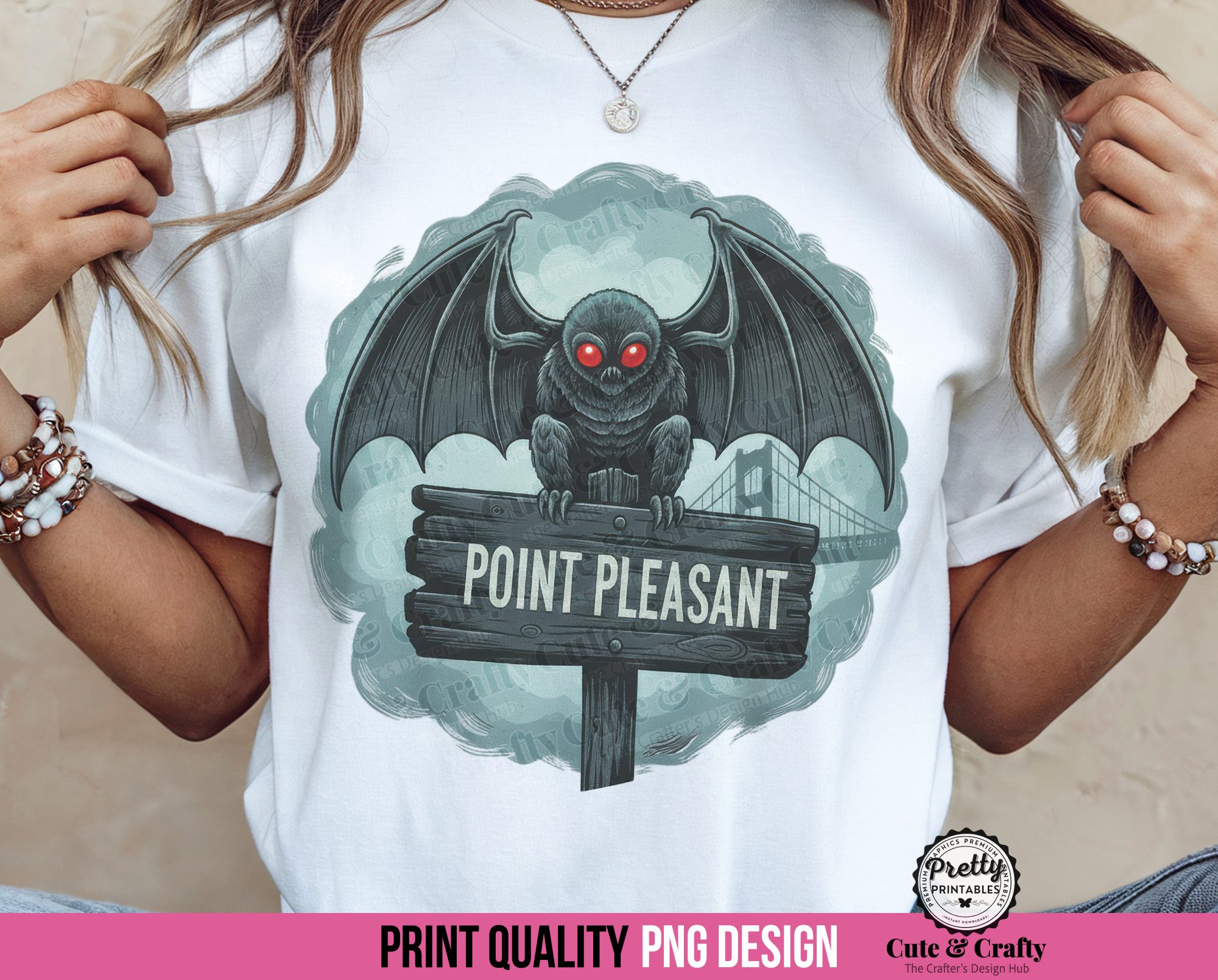 A must-have for any true crime buff, folklore enthusiast, or West Virginia local! This unique sublimation design showcases the iconic Mothman perched on a weathered sign with the famous Silver Bridge looming in the background.
