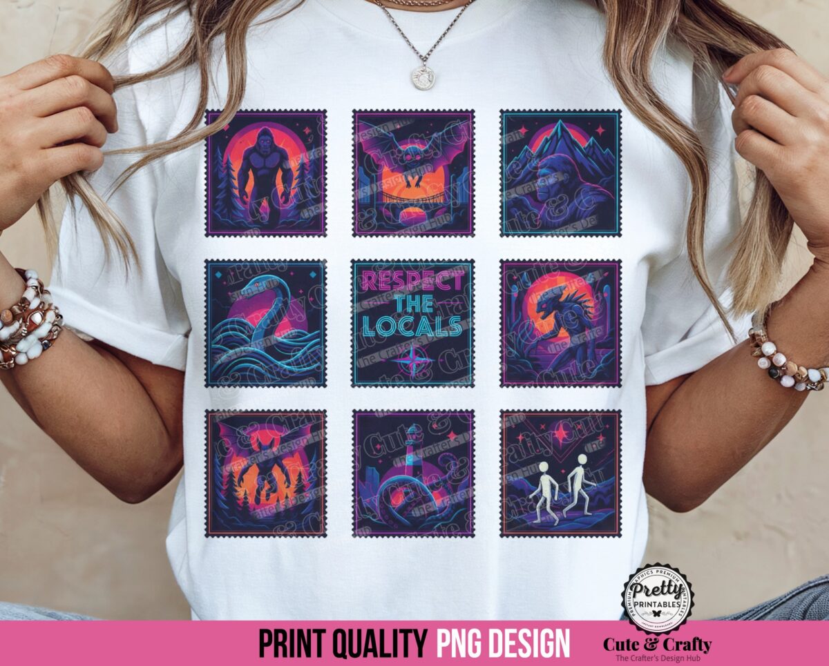 The vibrant neon colors and bold, stylized artwork bring these cryptids to life. This design is your ticket to creating the ultimate conversation-starting tee that sells itself to fellow believers and curious minds alike. Embrace the weird and wonderful, and make a shirt that truly stands out!