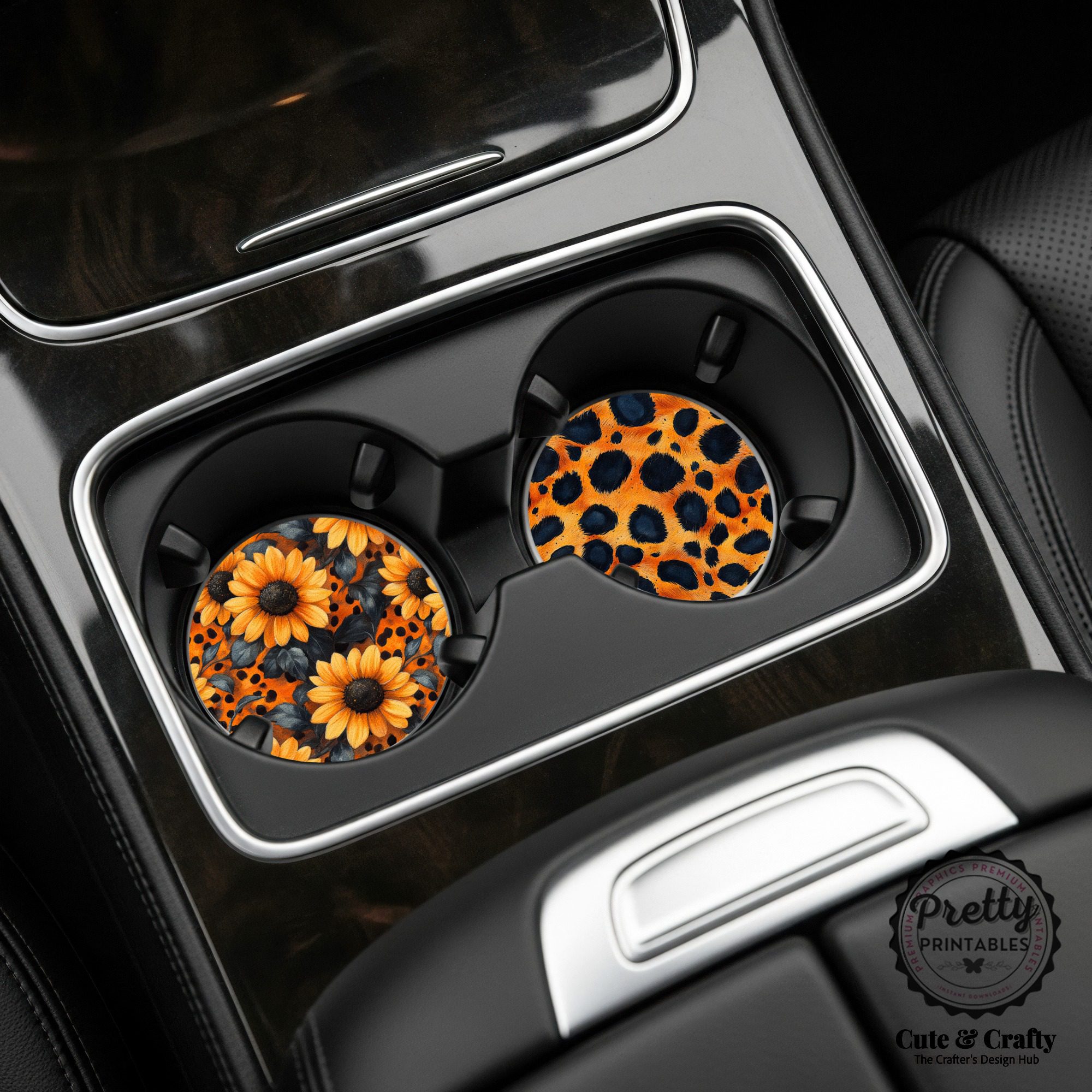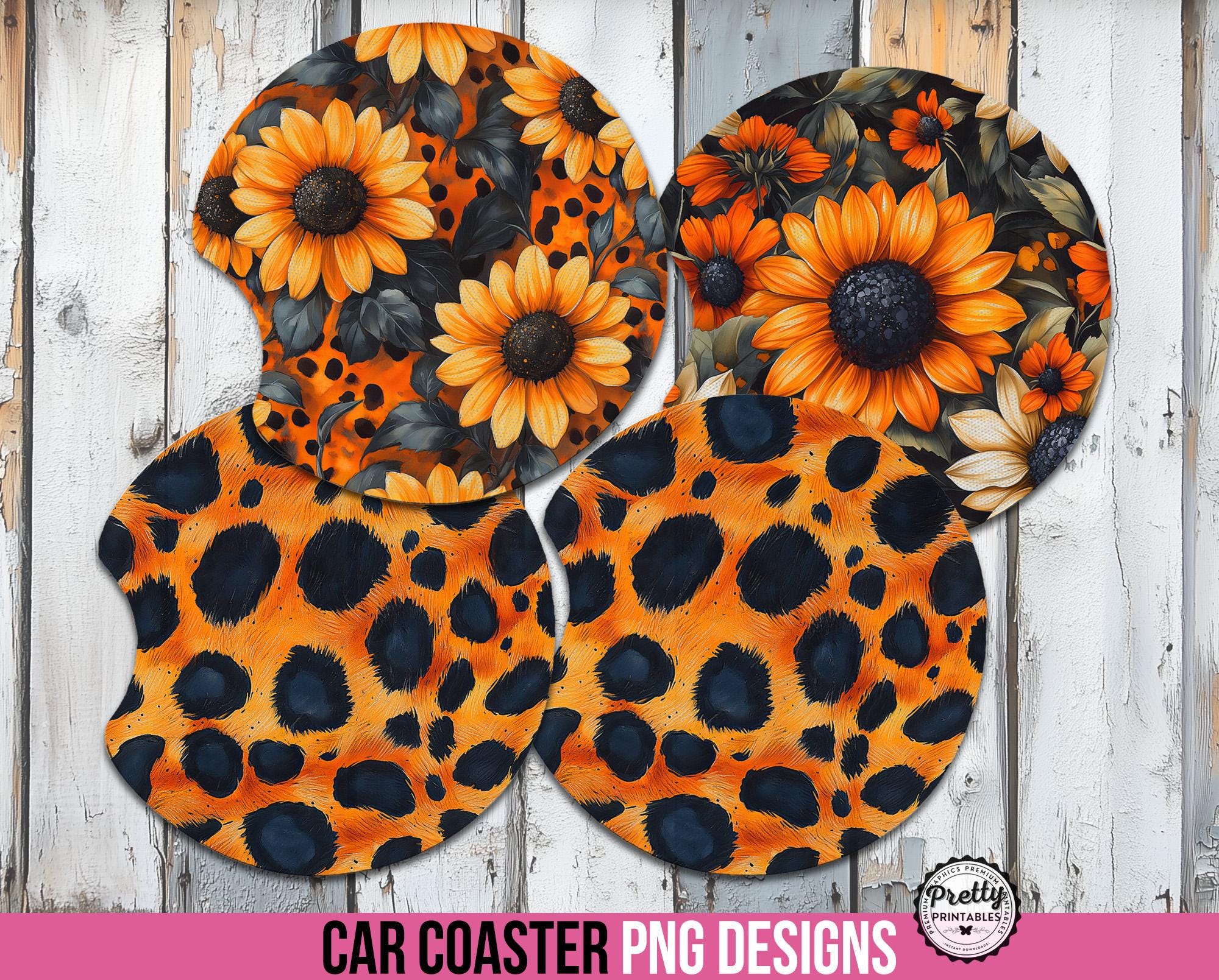 Bring a burst of sunshine and a touch of wild style to your ride with the Sunflower & Leopard Print Car Coaster PNG Sublimation Bundle! These round 4-inch designs blend bold leopard print with cheerful sunflowers, creating the perfect summer accessory for anyone who loves a little extra flair in their car.