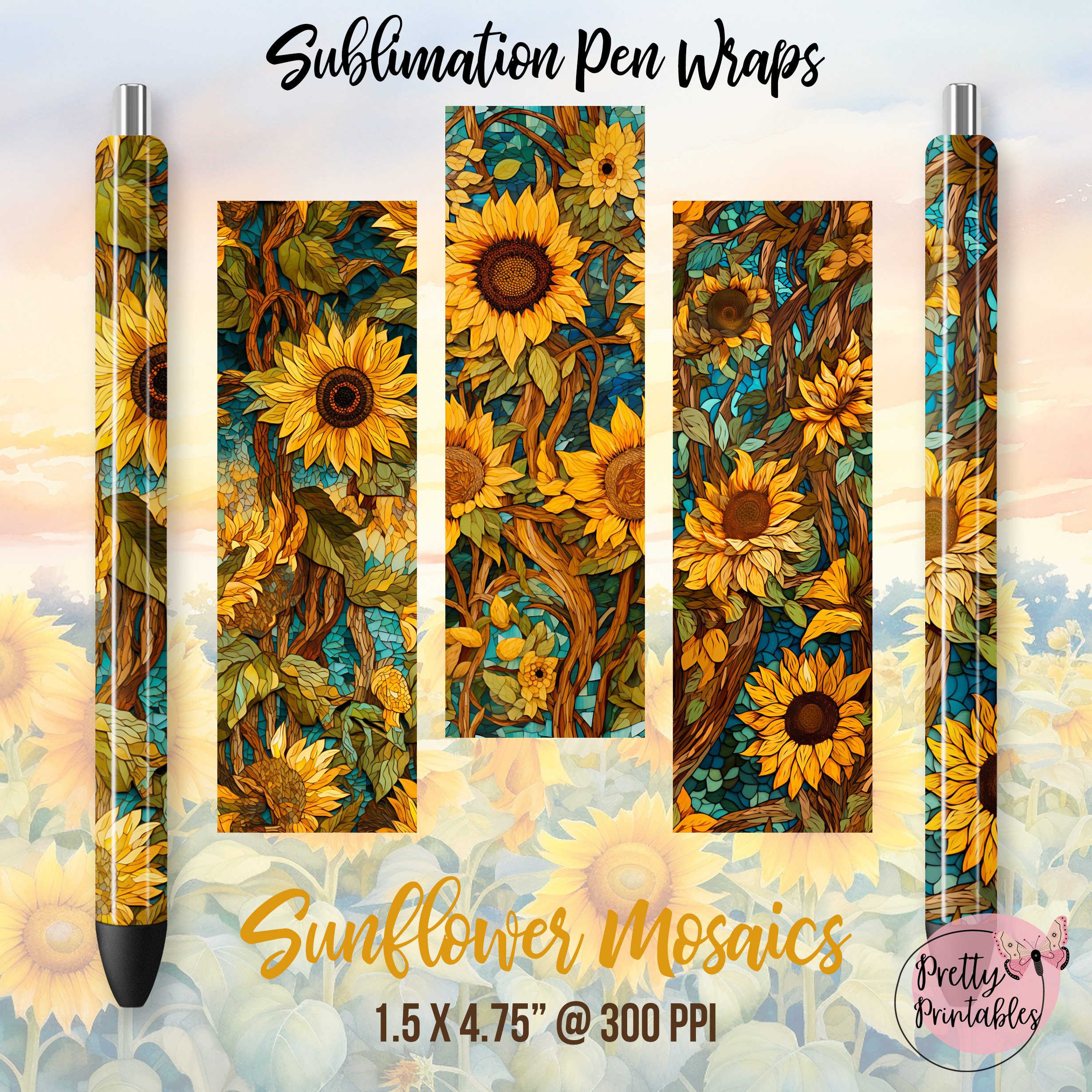 Unleash Your Pen’s Potential with our mosaic stained glass sunflower pen wrap bundle!