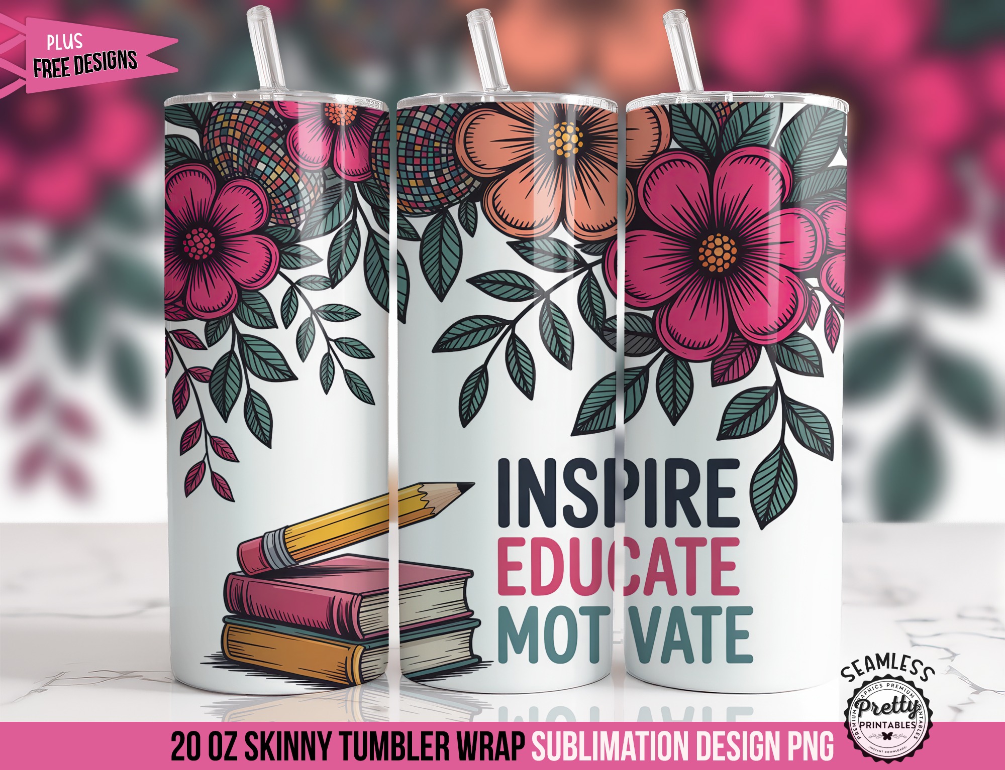 Featuring the powerful affirmation “Inspire Educate Motivate” alongside charming floral accents, a pencil, and a stack of books, this 20 oz sublimation design is perfect for teachers who want to carry a daily reminder of their impact and passion.
